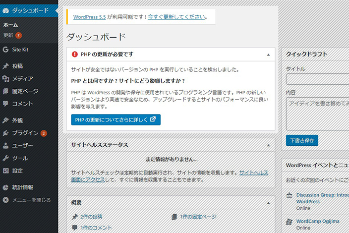 世界トップシェアのWordPressは、脆弱性や不具合も多く報告されるため、定期的にアップデートが行われています。